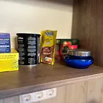Há também microondas, aparelhos de cozinha e fogão de vidro disponível na cozinha. A estação de ônibus Senoji Panevezio st fica a 10 minutos a pé.